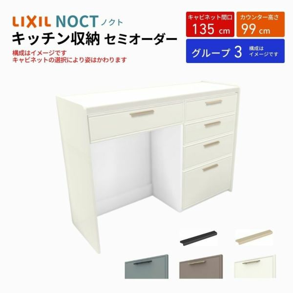 カップボード ノクト 食器棚 間口135cm(75+60cm) ハイフロアキャビネット キッチンボード カウンター高さ99cm 奥行45cm W1350mm LIXIL リクシル キッチン収納 グループ3