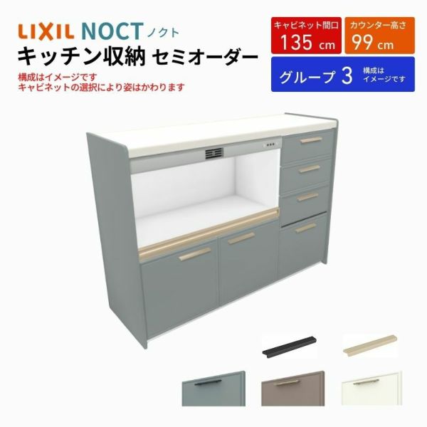 カップボード ノクト 食器棚 間口135cm(90+45cm) ハイフロアキャビネット キッチンボード カウンター高さ99cm 奥行45cm W1350mm LIXIL リクシル キッチン収納 グループ3