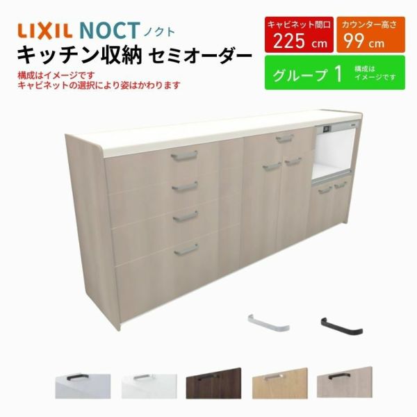 カップボード ノクト 食器棚 間口225cm(90+75+60cm) ハイフロアキャビネット キッチンボード カウンター高さ99cm 奥行45cm W2250mm LIXIL リクシル キッチン収納 グループ1