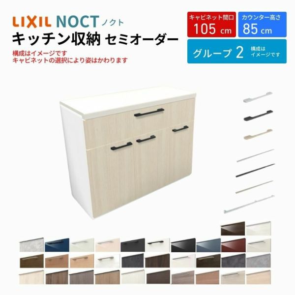 カップボード ノクト 食器棚 間口105cm フロアキャビネット キッチンボード カウンター高さ85cm 奥行45cm W1050mm LIXIL リクシル キッチン収納 一人暮らし グループ2