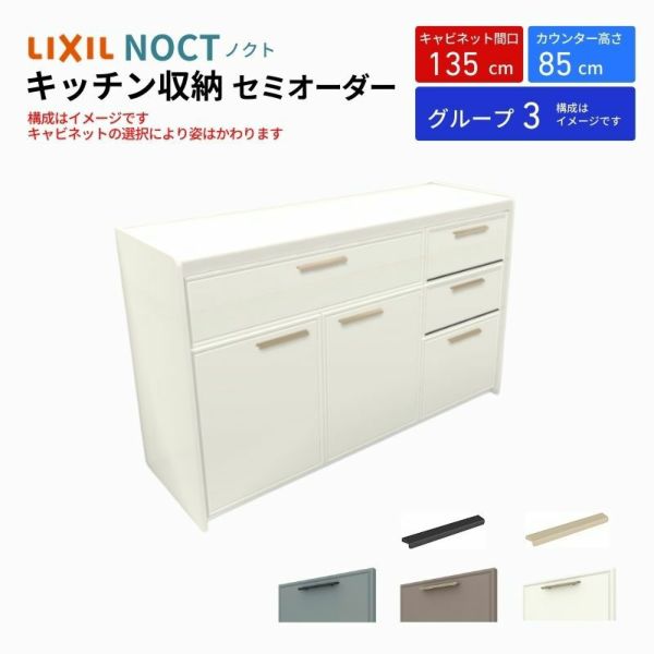 カップボード ノクト 食器棚 間口135cm(90+45cm) フロアキャビネット キッチンボード カウンター高さ85cm 奥行45cm W1350mm LIXIL リクシル キッチン収納 グループ3