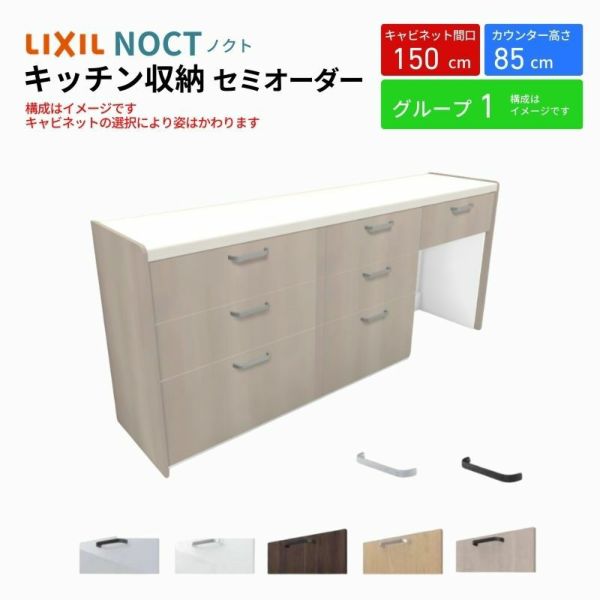カップボード ノクト 食器棚 間口150cm(105+45cm) フロアキャビネット キッチンボード カウンター高さ85cm 奥行45cm W1500mm LIXIL リクシル キッチン収納 グループ1
