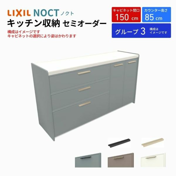 カップボード ノクト 食器棚 間口150cm(90+60cm) フロアキャビネット キッチンボード カウンター高さ85cm 奥行45cm W1500mm LIXIL リクシル キッチン収納 グループ3