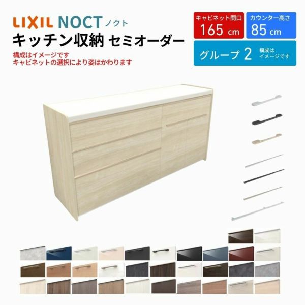 カップボード ノクト 食器棚 間口165cm(90+75cm) フロアキャビネット キッチンボード カウンター高さ85cm 奥行45cm W1650mm LIXIL リクシル キッチン収納 グループ2