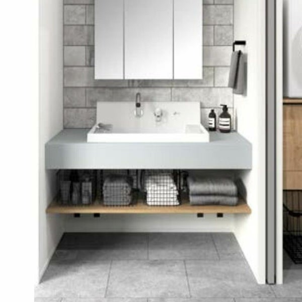 洗面化粧台 カスタムバニティ カウンター間口950~1800mm 壁位置 両側壁 現場カット可 ボウル間口750mm ボウル位置中央 シャワー水栓 リクシル LIXIL 造作風