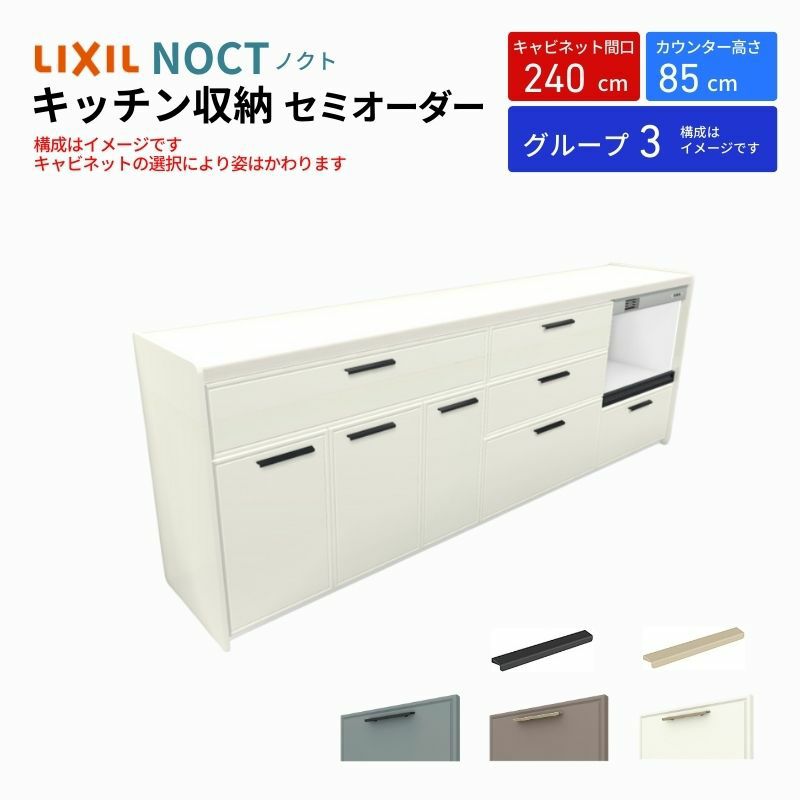 リクシル ノクト キッチン収納 キッチンカウンター 壁付型 カップボード ノクト 食器棚 間口240cm(105+75+60cm) フロアキャビネット キッチンボード カウンター高さ85cm 奥行45cm W2400mm LIXIL リクシル キッチン収納 グループ3