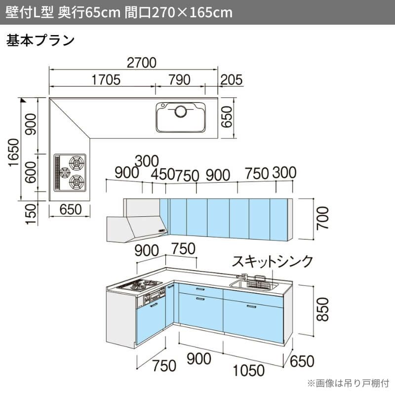 システムキッチン 流し台 本体 LIXIL 安い リフォーム おしゃれ システムキッチン リクシル シエラS 壁付L型 基本プラン ウォールユニット付 食器洗い乾燥機なし 間口270×165/180cm 奥行65cm グループ1 流し台 おしゃれ 可愛い システムキッチン セミオーダー リフォーム DIY