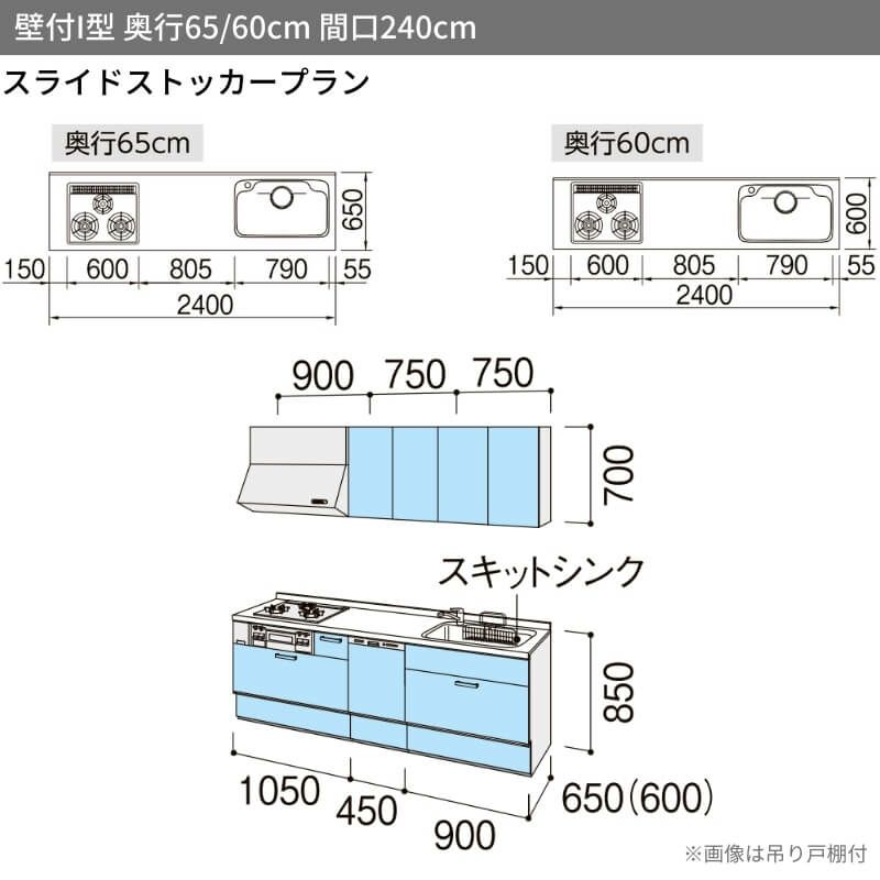 システムキッチン 流し台 本体 LIXIL 安い リフォーム おしゃれ システムキッチン リクシル シエラS 壁付I型 スライドストッカープラン ウォールユニット付 食器洗い乾燥機付 W2400mm 間口240cm 奥行65cm グループ2 流し台 おしゃれ 可愛い システムキッチン セミオーダー リフォーム DIY