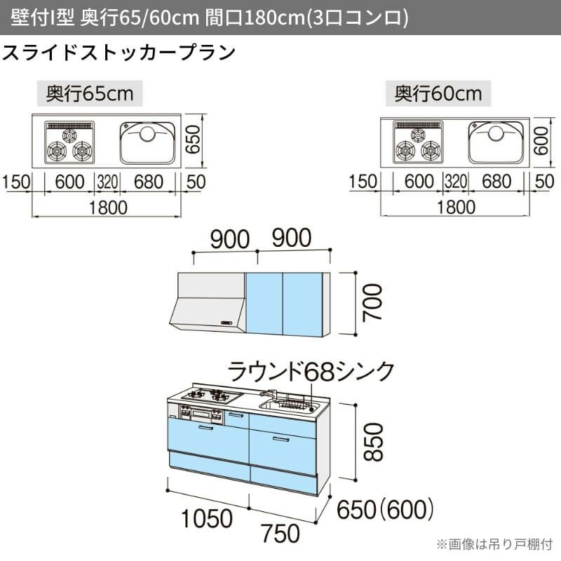 システムキッチン 流し台 本体 LIXIL 安い リフォーム おしゃれ システムキッチン リクシル シエラS 壁付I型 スライドストッカー ウォールユニット付 食器洗い乾燥機なし W1800mm 間口180cm(3口コンロ) 奥行65cm グループ2 流し台 おしゃれ 可愛い システムキッチン セミオーダー リフォーム DIY