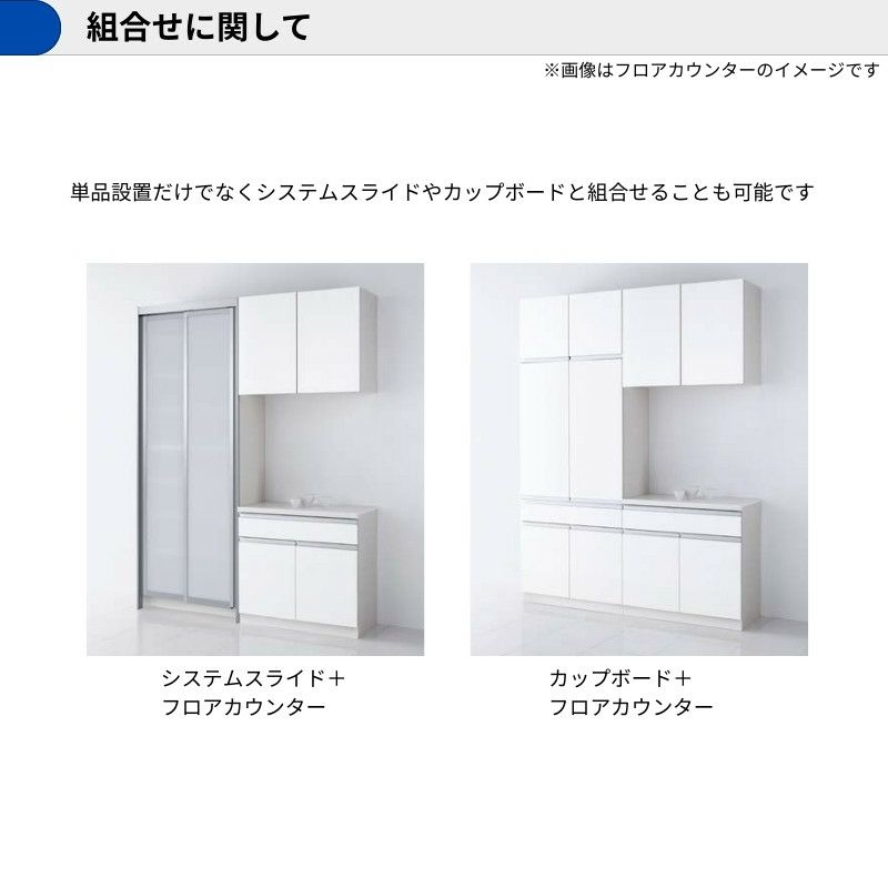カップボード 1350 クリナップ 食器棚 ロータイプ 2キャビネット カップボード ラクエラ 間口135cm(75+60cm) ハイフロアカウンター キッチンボード カウンター高さ99cm 奥行45cm W1350mm クリナップ シンシア 食器棚