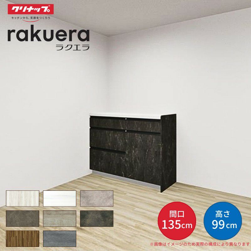 カップボード 1350 クリナップ 食器棚 ロータイプ 2キャビネット カップボード ラクエラ 間口135cm(75+60cm) ハイフロアカウンター キッチンボード カウンター高さ99cm 奥行45cm W1350mm クリナップ グランド 食器棚