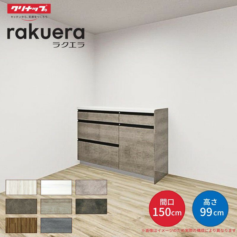 カップボード 1500 クリナップ 食器棚 ロータイプ 2キャビネット カップボード ラクエラ 間口150cm(90+60cm) ハイフロアカウンター キッチンボード カウンター高さ99cm 奥行45cm W1500mm クリナップ グランド 食器棚