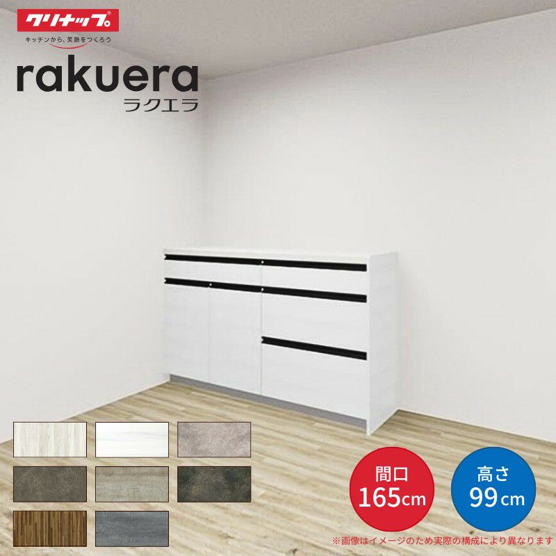 カップボード 1650 クリナップ 食器棚 ロータイプ 2キャビネット カップボード ラクエラ 間口165cm(90+75cm) ハイフロアカウンター キッチンボード カウンター高さ99cm 奥行45cm W1650mm クリナップ グランド 食器棚