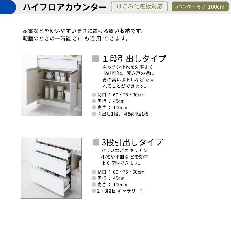 カップボード 750 クリナップ 食器棚 ロータイプ 1キャビネット カップボード ラクエラ 間口75cm ハイフロアカウンター キッチンボード カウンター高さ99cm 奥行45cm W750mm クリナップ グランド 食器棚 一人暮らし