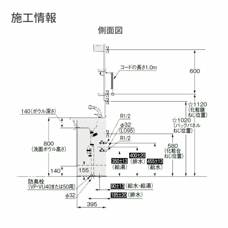 豊富なカラーでスタイリッシュで使いやすいカウンター洗面 洗面化粧台 カスタムバニティ カウンター間口800~1800mm 壁位置 両側壁 現場カット可 ボウル間口600mm ボウル位置中央 シャワー水栓 リクシル LIXIL 造作風