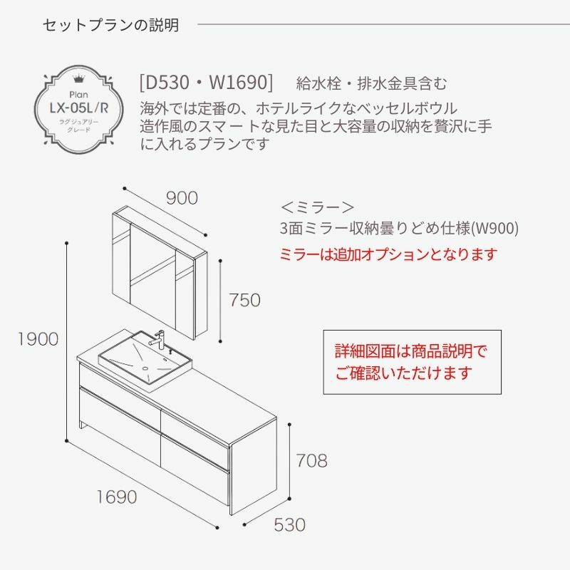 スマートサニタリー アイカ aica ミラー リフォーム DIY 安い 洗面化粧台 スマートサニタリー Plan LX-05L/R W1690×D530×H1900mm ラグジュアリーグレード シャワー付混合栓 アイカ AICA 洗面台 おしゃれ リフォーム