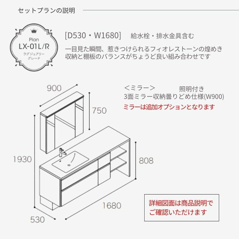 スマートサニタリー アイカ aica ミラー リフォーム DIY 安い 洗面化粧台 スマートサニタリー Plan LX-02L/R W1680×D530×H1900mm ラグジュアリーグレード シャワー付混合栓 アイカ AICA 洗面台 おしゃれ リフォーム