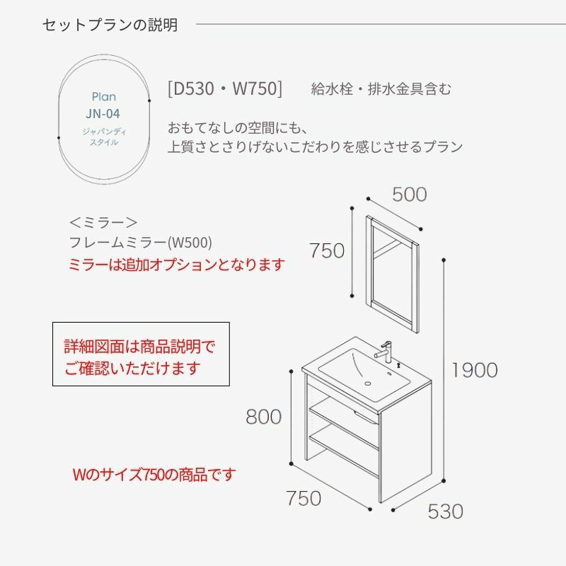 スマートサニタリー アイカ aica ミラー リフォーム DIY 安い 洗面化粧台 スマートサニタリー Plan JN-04 W750×D530×H1900mm ジャパンディ シャワー付混合栓 アイカ AICA 洗面台 おしゃれ リフォーム