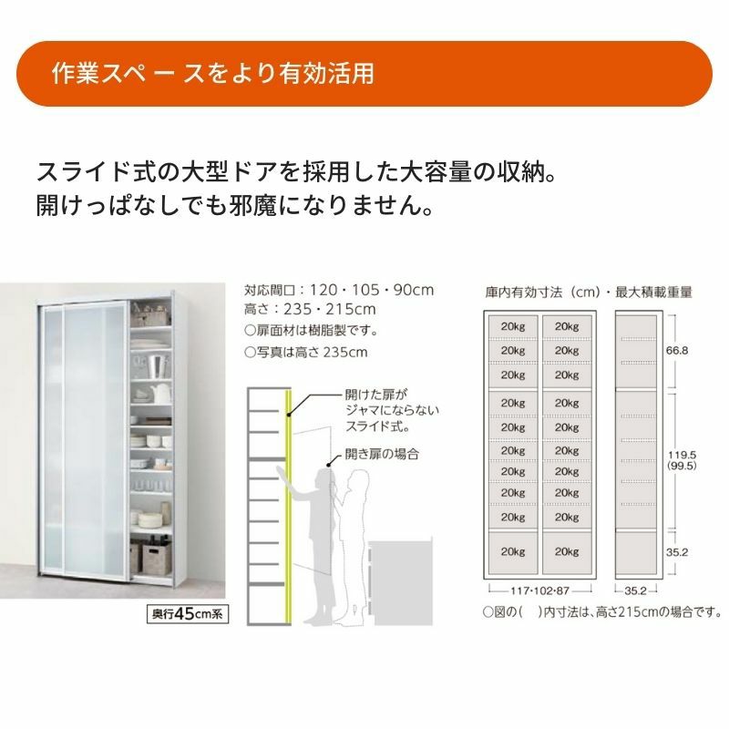 リクシル ノクト キッチン収納 キッチンカウンター 壁付型 ノクト/シエラ 食器棚 スライディングドアストッカー 間口90/105/120cm 奥行45cm 高さ215/235cm リクシル 引き戸 LIXIL キッチン収納 トールタイプ エンドパネルなし