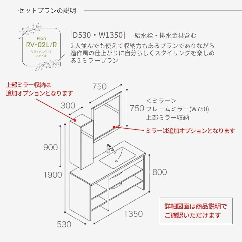 スマートサニタリー アイカ aica ミラー リフォーム DIY 安い 洗面化粧台 スマートサニタリー Plan RV-02L/R W1350×D530×H1900mm リラックスヴィラ シャワー付混合栓 アイカ AICA 洗面台 おしゃれ リフォーム