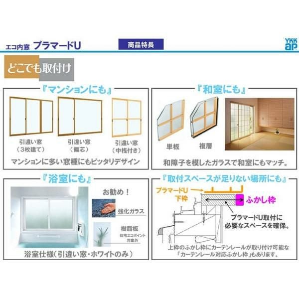 他の画像を見る 二重窓 内窓 プラマードU 断熱 和風 和室 和紙調 リフォーム DIY 【3/23販売終了】二重窓 内窓 プラマードU 2枚建 引き違い窓 和室用 Low-E複層ガラス 横繁吹寄格子 すり板4+A11+3mm W幅1501~1896 H高さ2101~2200mm YKKap メーカーお取り寄せ12~14営業日で発送 メーカー希望価格 ¥ 357,500 のところ 当店通常価格 ¥ 150,100 税込 会員特別価格 ¥ 145,500 税込 (0) 詳細を見る お気に入りに登録する