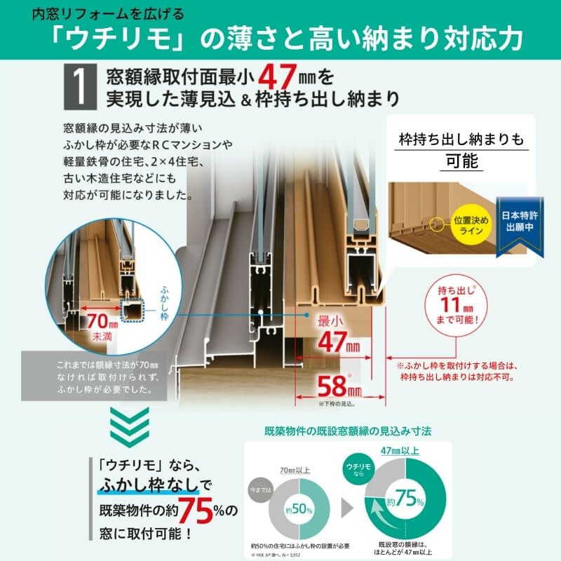 窓 内窓 ウチリモ YKKAP 簡単 断熱 防音 結露対策 補助金 二重窓 内窓 ウチリモ 4枚建 引違い窓 Low-E複層ガラス すり板5+A10+3mm W3001~3500 H601~1000mm YKKap 断熱 防音 結露対策 サッシ