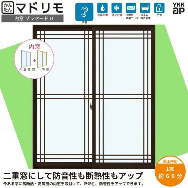 内窓 二重窓 プラマードU 引き違い窓 2枚建 Low-E複層ガラス ガス入り 格子入 プレーリー PA02 透明3+G12+3mm/型4+G11+3mm W1501~2000×H1801~2000mm YKKap