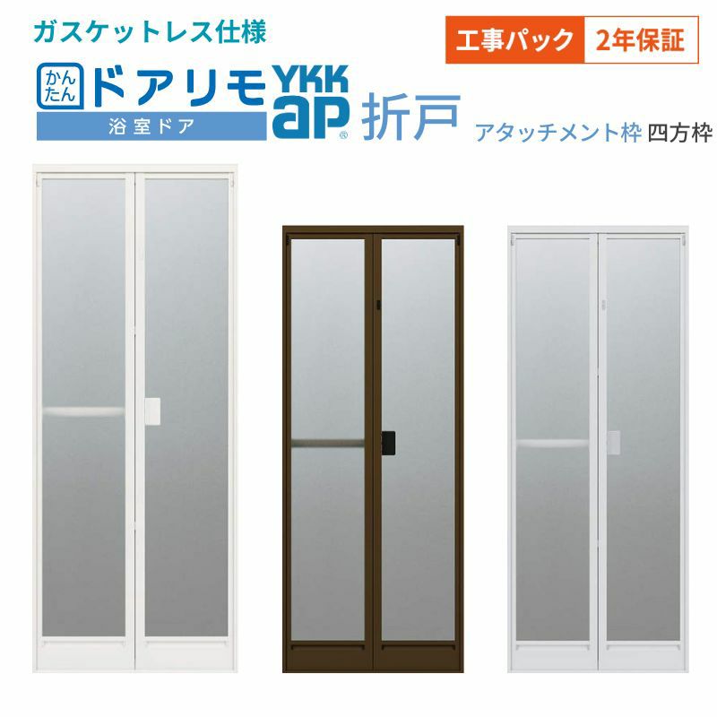 【工事パック】浴室ドア 2枚折戸取替用 YKKap かんたんドアリモ 四方枠 アタッチメント工法 ガスケットレス W521~873×H1527~2133mm 交換 取替 工事保証付【リフォームおたすけDIY:公式】