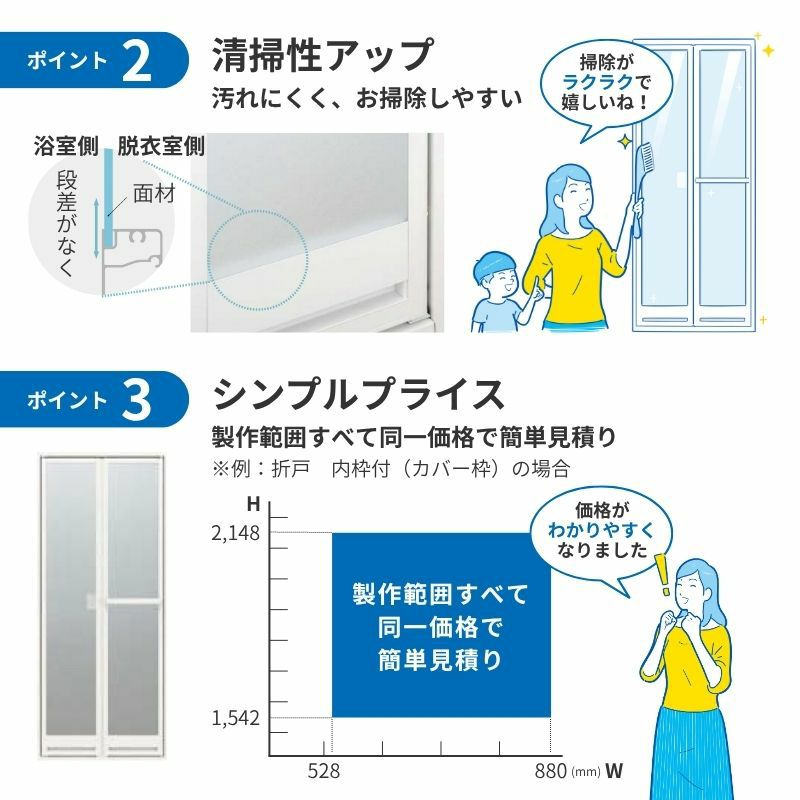 【プロ向き】かんたんドアリモ 浴室ドア 内付枠 カバー工法 ガスケットレス仕様 折戸 W幅528~880×H高さ1542~2148mm YKKAP 浴室出入口 アルミサッシ 枠ごと交換 リフォーム DIY【リフォームおたすけDIY 公式】