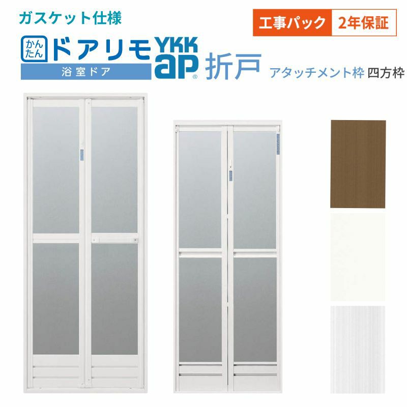 浴室ドア 折戸 樹脂板入 浴室折れ戸 取り替え 簡易交換用 【工事パック】浴室ドア 2枚折戸取替用 YKKap かんたんドアリモ 四方枠 アタッチメント工法 ガスケット仕様 W521~861×H1529~2079mm 交換 取替 工事保証付【リフォームおたすけDIY:公式】