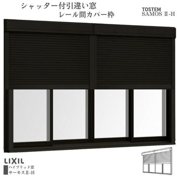 断熱サッシ サーモス2-H LIXIL リクシル 樹脂アルミ複合サッシ シャッター付引違い窓 レール間カバー枠 34720 サーモス2-H W3510×H2030mm テラスタイプ 4枚建 複層ガラス 樹脂アルミ複合サッシ シャッター LIXIL リクシル