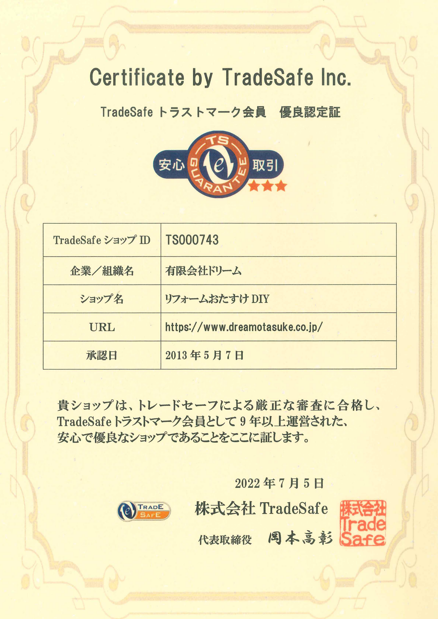 TradeSafe トラストマークは日本で唯一国際基準に基づきネットショップの信頼性と安心を承認する第三者認証マークです