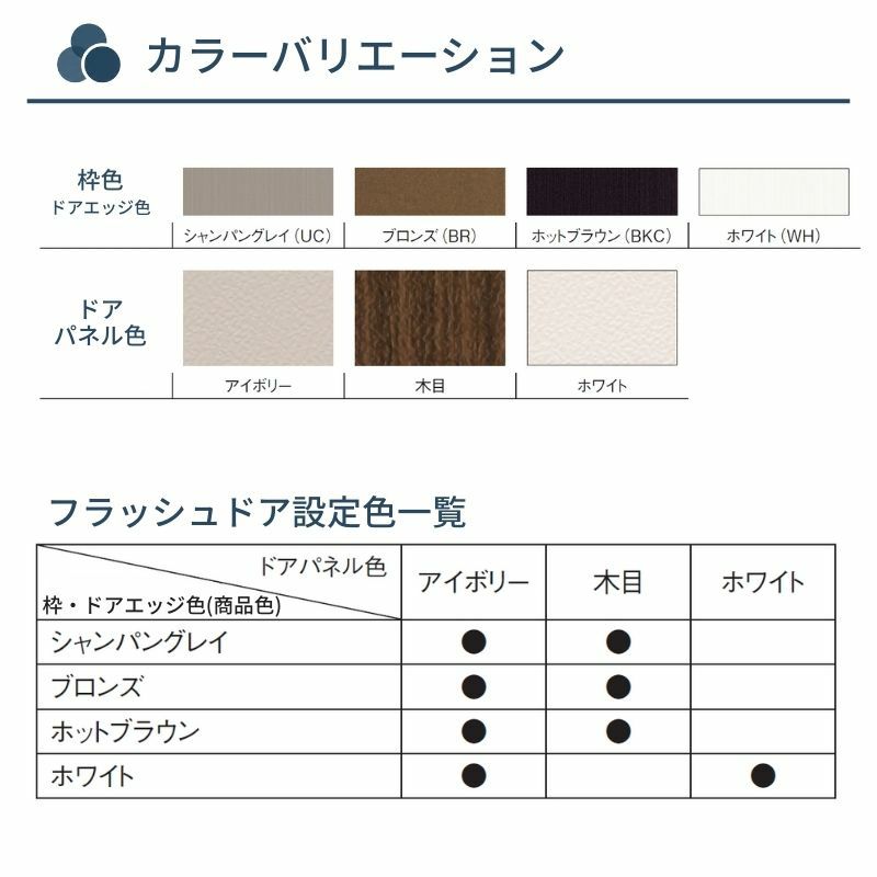 玄関ドアにはローコストなリクシル/トステム製「ロンカラーフラッシュドア」販売価格16,300円~最高級なリクシル/トステム製「アヴァントス」シリーズまでございます。用途に応じてご選択ください。