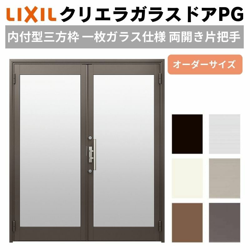 店舗ドア 事務所 屋外 店舗扉 倉庫 サッシ ドア 玄関 リフォーム クリエラガラスドアPG 内付型 三方枠仕様 特注 W1057~1827×H1096~1900mm オーダーサイズ 店舗ドア 両開き 片把手 1枚ガラス仕様 複層ガラス LIXIL リクシル