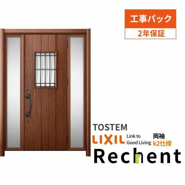 【工事パック】 リフォーム用玄関ドア リシェント3 両袖ドア ランマなし D44型 断熱仕様 k2仕様 W1193~1695×H1839~2439mm リクシル/LIXIL 工事保証付