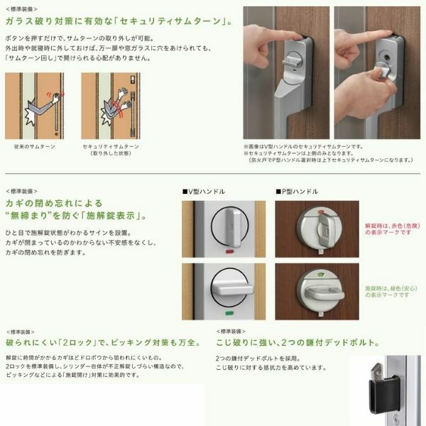 - 【ガラス破り対策に有効な脱着式のサムターン。】