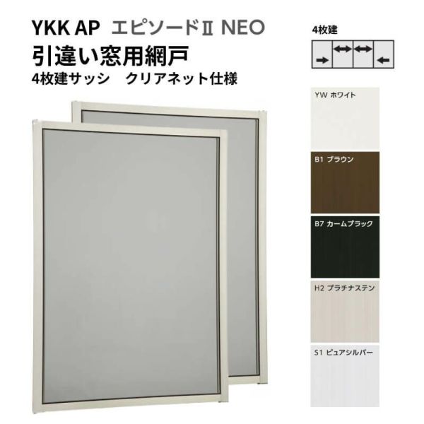 エピソード2NEO専用網戸 引違い網戸 サイズ呼称[24313-4] 4枚建サッシ用 クリアネット仕様 窓タイプ 2枚入り 純正品 規格サイズ スライド網戸 YKK AP