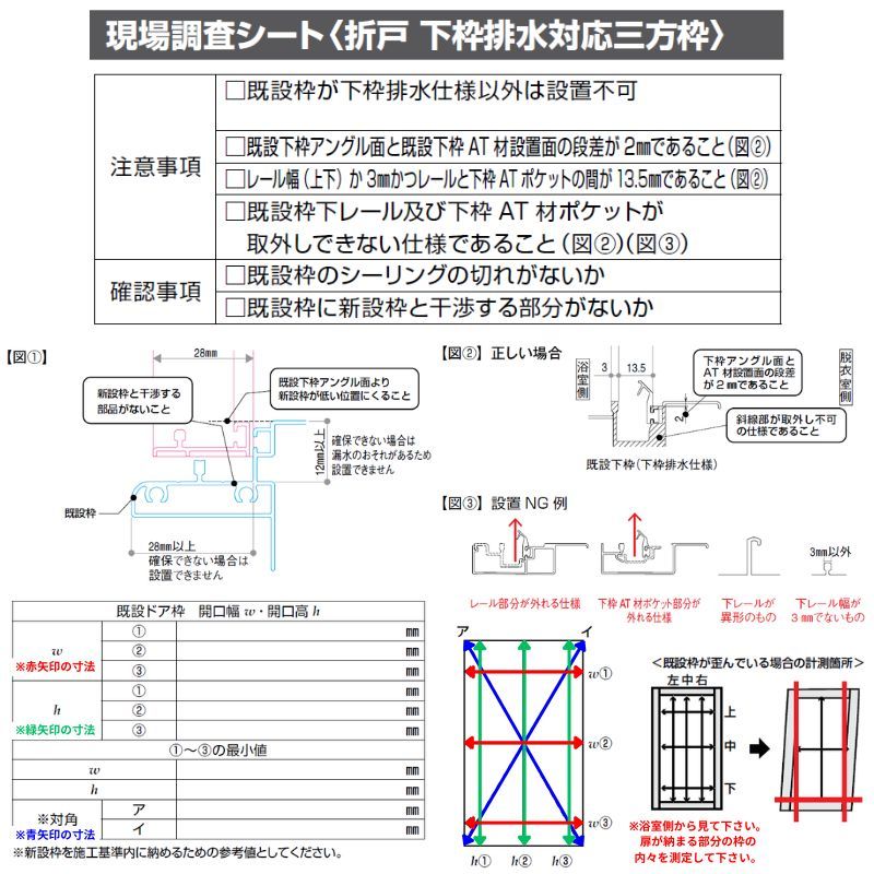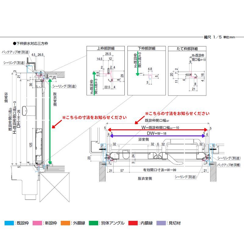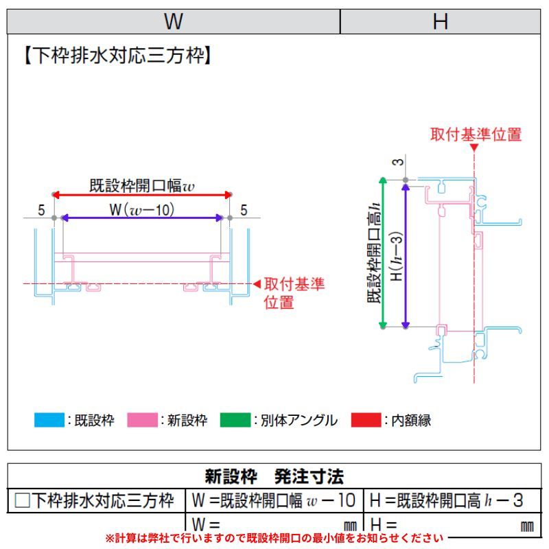 仕様:下枠排水対応三方枠 アタッチメント工法