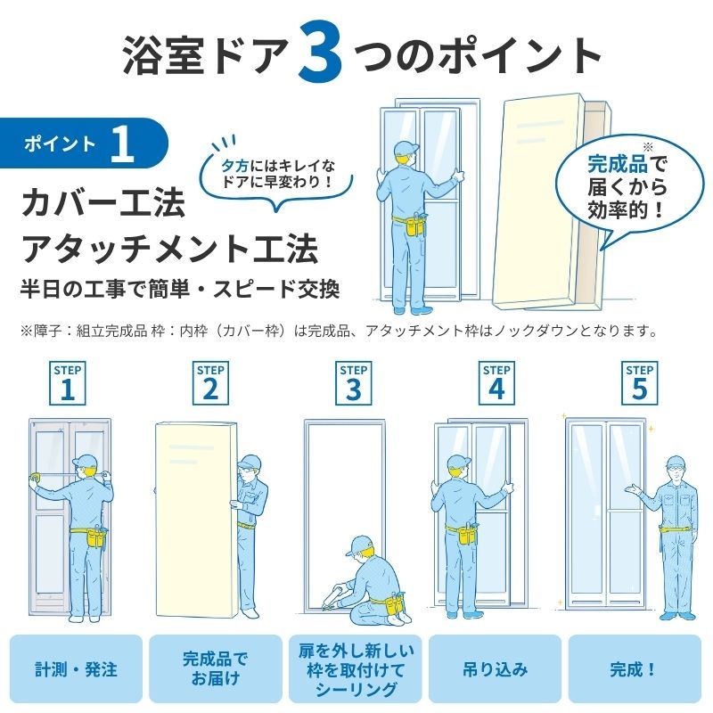 浴室ドア 折戸 樹脂板入 浴室折戸 取り替え 簡易交換用