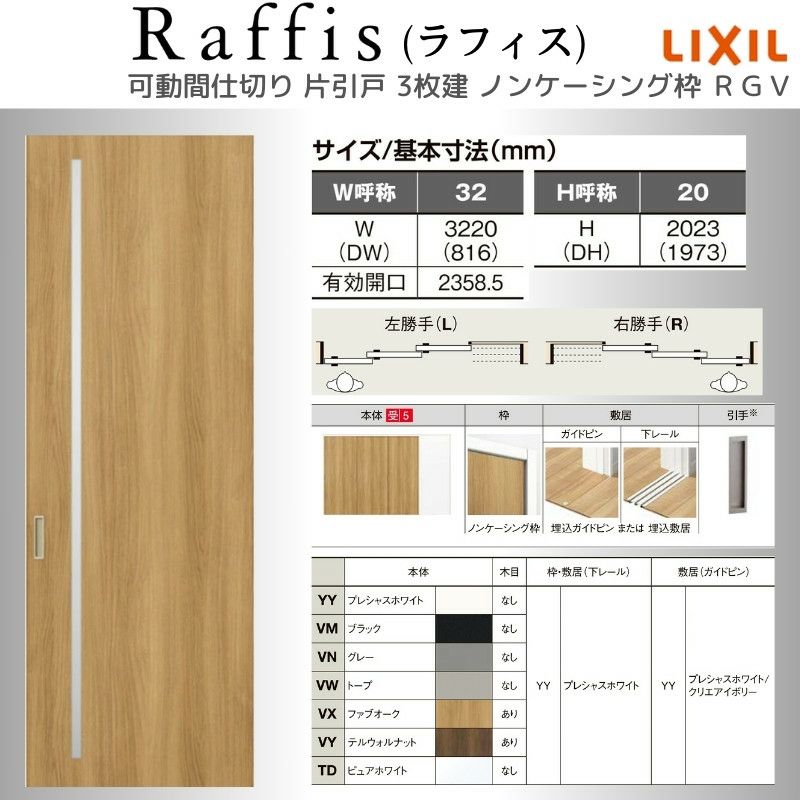 他の画像を見る 室内ドア ラフィス リビング 建具 可動間仕切り 片引戸3枚建 上吊方式 ノンケーシング枠 RAA ラフィス 3220 リクシル LIXIL Raffis 建具 交換 リフォーム DIY メーカーお取り寄せ12~14営業日で発送 メーカー希望価格 ¥ 333,300 のところ 当店通常価格 ¥ 133,300 税込 会員特別価格 ¥ 129,300 税込 (0) 詳細を見る お気に入りに登録する