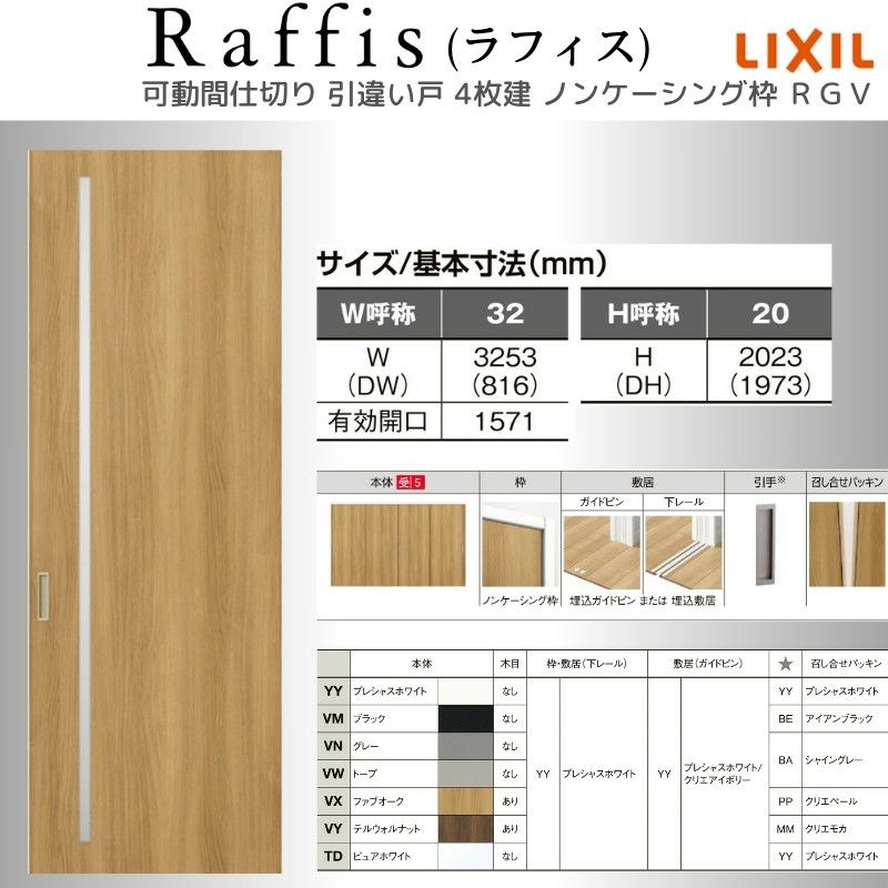 他の画像を見る 室内ドア ラフィス リビング 建具 可動間仕切り 引違い戸4枚建 上吊方式 ノンケーシング枠 RGX ラフィス アクリル系パネル 3220 リクシル LIXIL Raffis 建具 交換 リフォーム DIY メーカーお取り寄せ12~14営業日で発送 メーカー希望価格 ¥ 480,700 のところ 当店通常価格 ¥ 192,200 税込 会員特別価格 ¥ 186,400 税込 (0) 詳細を見る お気に入りに登録する