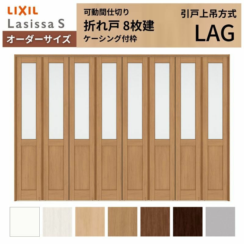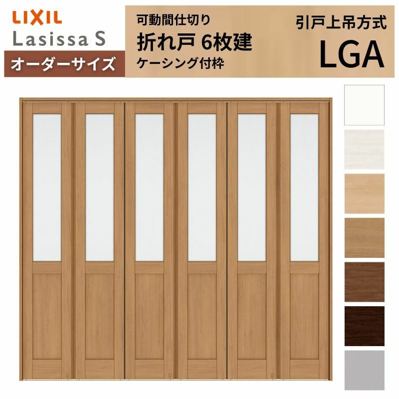 リクシル 可動間仕切り 折れ戸|全開で開放的な大空間が作れる扉 【オーダーサイズ】可動間仕切り LIXIL 6枚建 折れ戸 ラシッサS ガラスタイプ LGA ケーシング付枠 W1860~2763×H1746~2425 折戸 特注 リフォーム