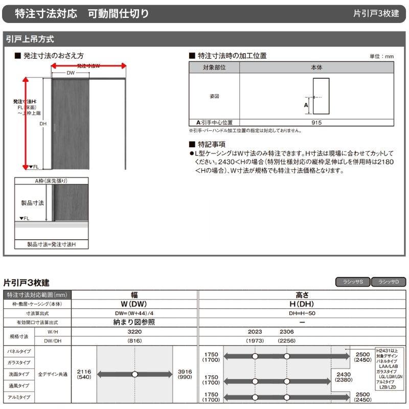 リクシル 可動間仕切り 引戸|足元段差なしで部屋を自在に仕切る 【オーダーサイズ】可動間仕切り LIXIL 室内引戸 上吊方式 片引戸3枚建 ラシッサS パネルタイプ LBB ケーシング付枠 W2116~3916×H1750~2430