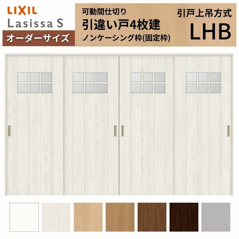 リクシル 可動間仕切り 引戸|足元段差なしで部屋を自在に仕切る 【オーダーサイズ】可動間仕切り LIXIL 室内引戸 上吊方式 引違い戸4枚建 ラシッサS ガラスタイプ LHB ケーシング付枠 W2149~3949×H1750~2430
