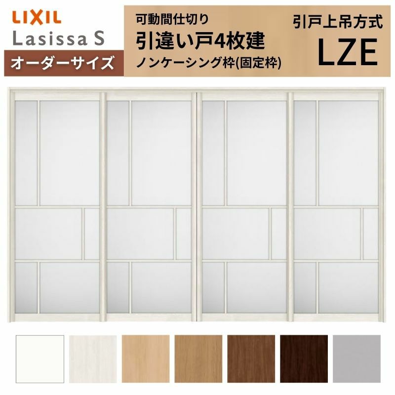 リクシル 可動間仕切り 引戸|足元段差なしで部屋を自在に仕切る 【オーダーサイズ】可動間仕切り LIXIL 室内引戸 上吊方式 引違い戸4枚建 ラシッサS アルミタイプ LZE ケーシング付枠 W2149~3949×H1750~2430