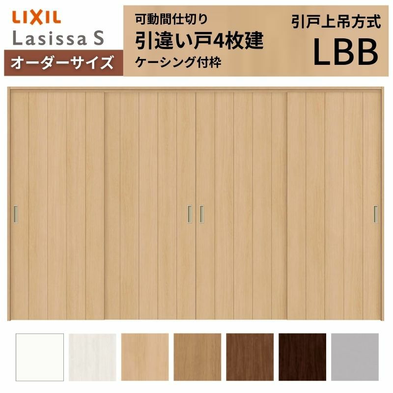 リクシル 可動間仕切り 引戸|足元段差なしで部屋を自在に仕切る 【オーダーサイズ】可動間仕切り LIXIL 室内引戸 上吊方式 引違い戸4枚建 ラシッサS パネルタイプ LBB ケーシング付枠 W2149~3949×H1750~2430
