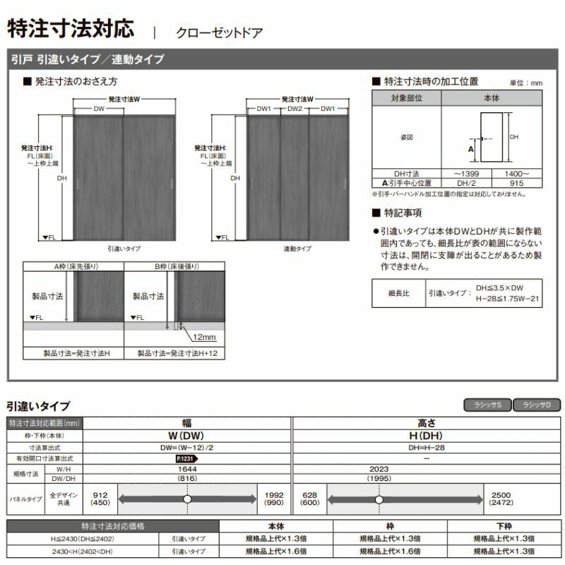 リクシル ラシッサS オーダーサイズ クローゼットドア 引違い