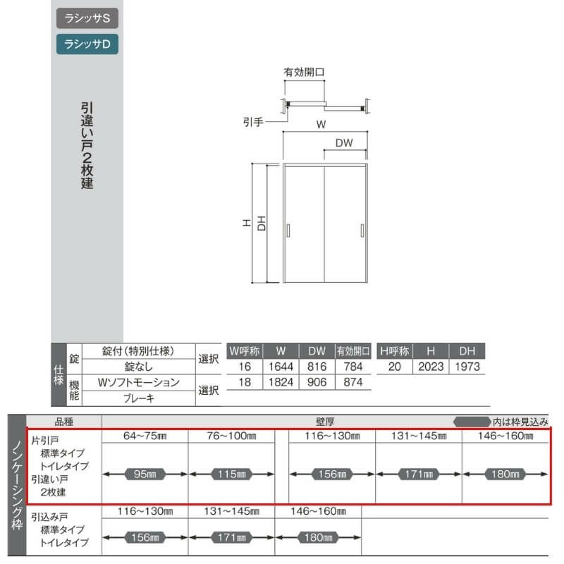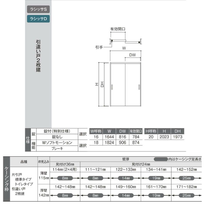 LIXIL ラシッサD ノースフォレスト 建具 交換 リフォーム 室内引戸 1620/1820 ラシッサD ノースフォレスト 上吊方式 引違い戸2枚建 ANUH-LHB ケーシング付枠 LIXIL リクシル DIY
