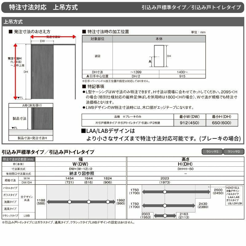 リクシル ラシッサ 引戸 リビング バリアフリー 省スペース オーダーサイズ LIXIL 洗面タイプ 室内引戸 上吊方式 引込み戸 標準タイプ ラシッサS LYH ノンケーシング枠 W1188~1992mm×H1750~2430mm リクシル 建具 DIY