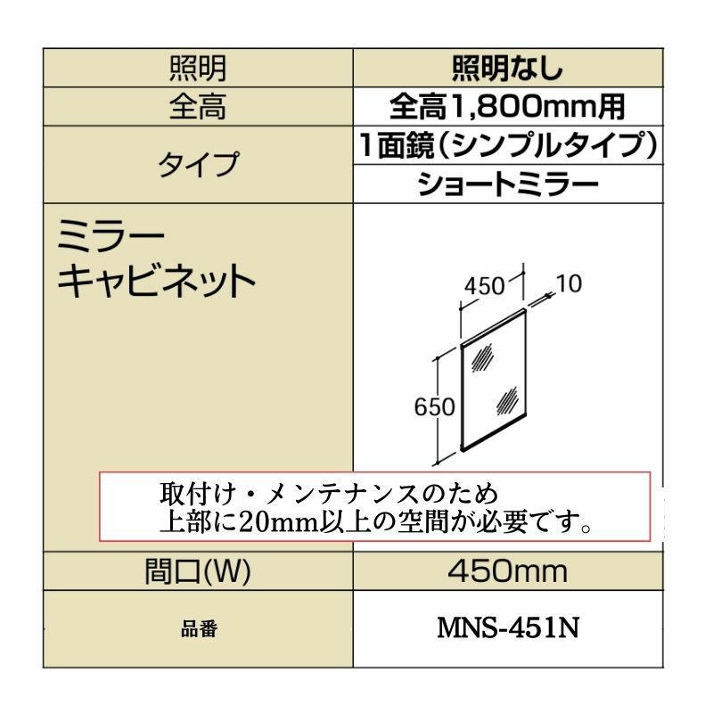 他の画像を見る 洗面化粧台エスタ ボウル一体タイプ コンポ・システムタイプ ミラーキャビ 全高 1800mm用 1面鏡(シンプルタイプ) ショートミラー 照明なし MNS-451N LIXIL/INAX リクシル 化粧台 リフォーム DIY お客様確認後21営業日以内で発送 メーカー希望価格 ¥ 16,500 のところ 当店通常価格 ¥ 9,500 税込 会員特別価格 ¥ 9,200 税込 詳細を見る お気に入りに登録する